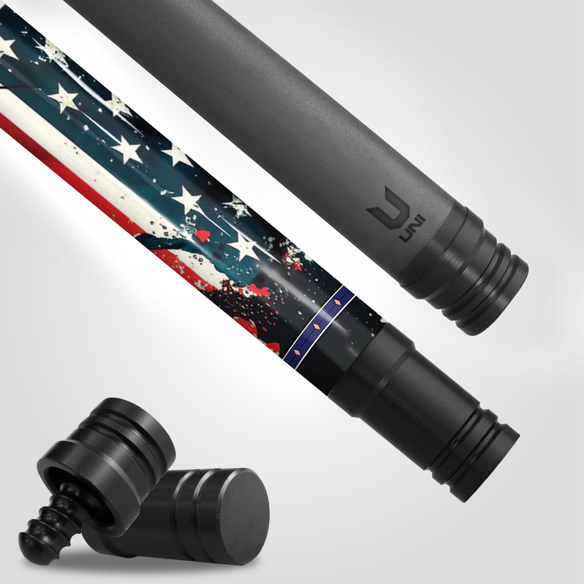 🇺🇸 EDGE PATRIOTIC AESTHETICS: Featuring a high-impact Splatter Flag design, the shaft appears battle-worn and victory-tested. At the base, a hauntingly detailed Patriot Skull wrapped in the Stars and Stripes serves as a symbol of eternal freedom and unshakable resolve. The deep black backdrop makes the red, white, and blue pop with an aggressive intensity that intimidates the competition.